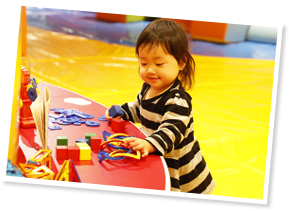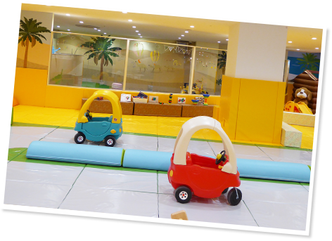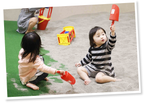 手や頭を使って遊ぶ小型遊具がたくさんあるエリアです。小型ハウス内やトイエリアでは、遊具を手に取り、試行錯誤しながら頭と手を使うことで心地良い刺激をもたらします。ベビーエリアも設けており、親子で思い思いの時間を過ごすことができます。
